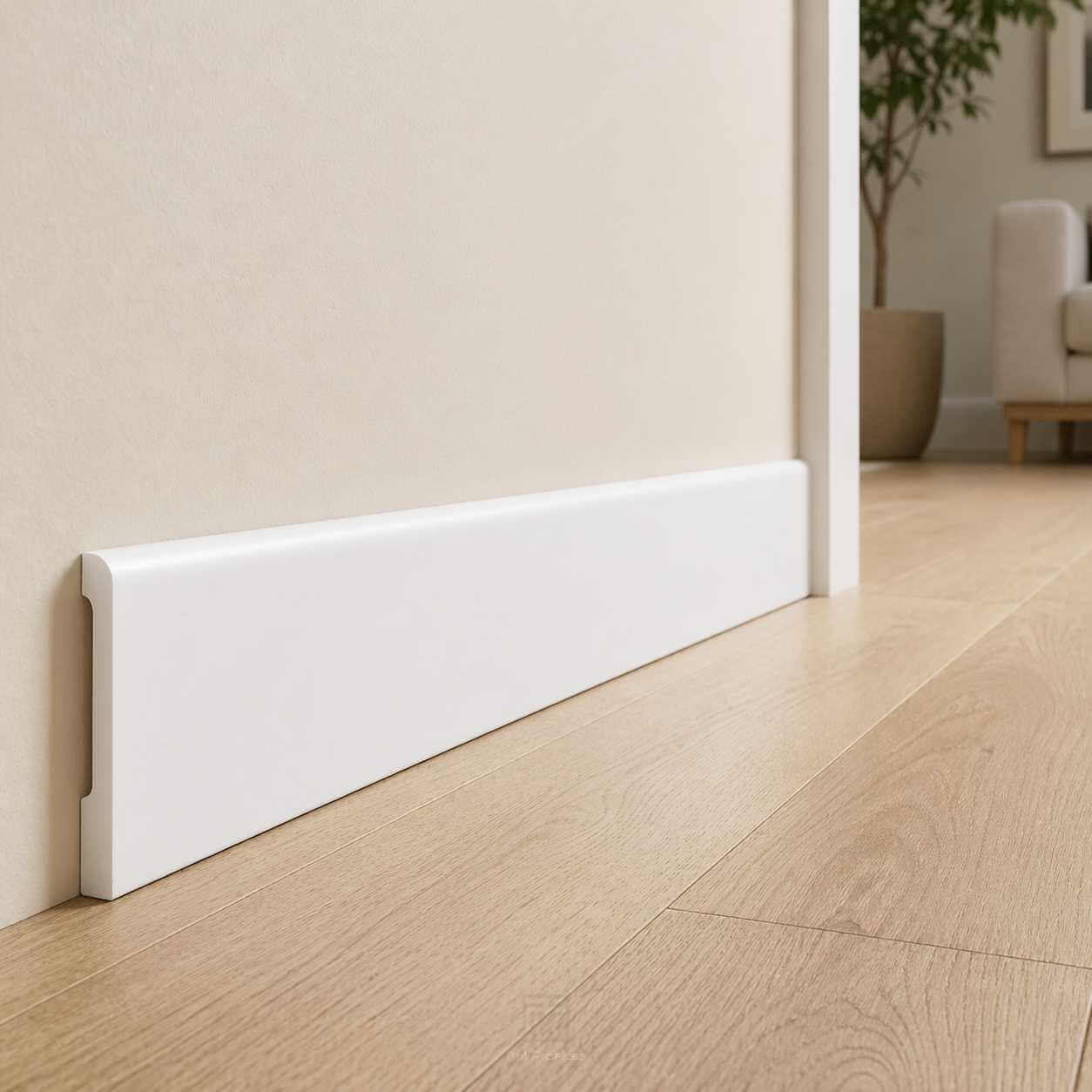Polimer malzemeden üretilen süpürgelikler, klasik süpürgelik çözümlerine göre daha uzun ömürlü, hafif ve pratik bir kullanım sunar. Düz formu sayesinde özellikle modern ve sade dekorasyon anlayışına uyum sağlar. Temiz çizgileri ile yaşam alanlarında düzenli, şık ve bütüncül bir görünüm oluşturur.